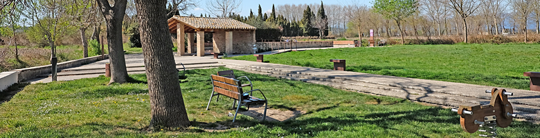 Davant la plaça de l'Església, es troba el paratge de la Font de l'Abat Rigau, on s'hi troba una zona de l'itinerari saludable, amb un parc urbà de salut, per tal de fer escalfaments o estiraments abans i després de la caminada o correguda, i també una zona d'esbarjo per a la mainada. En el mateix indret s'hi troba una de les construccions més populars que pràcticament tots els pobles en gaudien i que avui han passat a millor vida, els coneguts rentadors públics o safareigs. El rentador de Vilabertran també en temps de l'Abat Rigau fou punt d'origen de rierols i canals de rec per a les hortes, comptant a més amb un petit llac avui sec i inaccessible per trobar-se dins una propietat privada.